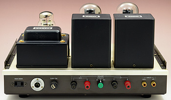 ![]() ボリューム追加。ツマミはシャーシーに合わせてシャンパンゴールドにした。 ![]() 改造前のリアパネルレイアウト。(再掲) ![]() インピーダンススイッチはスピーカー端子の間に設置(緑色のツマミ)。もちろん文字シールも剥がして作り直し。 |