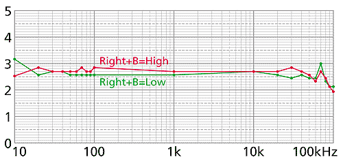 オン-オフ法で測定したダンピングファクターです。+B=Lowで平均2.57、+B=Highで平均2.7あたりです。 VT-62 / 801Aを14kΩのOPTで使った場合、例外なくこの程度になります。 ただ、LowとHighでそれほど変わらないだろうと思っていたのですが、少し差が出たのは意外でした。供給電圧が変わればプレート内部抵抗の数値も変わるので、よくよく考えたら当然と言えば当然ですが。 数値的にはこれぞ直熱3極管。無帰還でも使えるDF値と言う感じです。 |