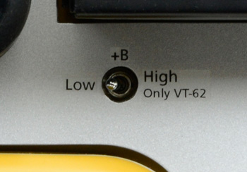 ![]() ↑ 本機のシャーシー構成。塗装まで終えているが、この後機能追加で穴あけ加工している。 ![]() ↑ トランスの色はエンブレムに合わせた。 ![]() ↑ パワー切り替えスイッチ。+B電圧が約100V上昇するためVT-62 / 801専用。 ![]() ↑ 底面。アルミパンチング板を貼っている。 |