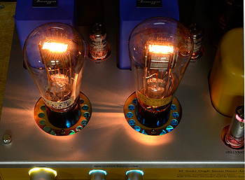 ![]() ↑ タイトベースのVT-25Aを使うと雰囲気が変わる。音はこれが一番良かった。やはり暗いフィラメントの球は音が良い?、それともさすがにウェスタンと言うべき? ![]() ↑ 川西のC-202A使用時。球が一番明るいのはコレ。形もナス管だし光らすともうほとんど電球。 |